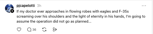 While walking the dog this morning I spontaneously thought of the ending to last night’s episode of “Rooster” and I burst out laughing out loud.